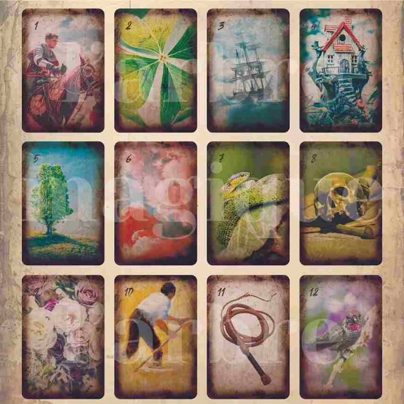 ✨ Aquí tienes una baraja Petit Lenormand reinventada, "Retro", inspirada en imágenes antiguas de estilo vintage. Esta baraja de oráculo consta de 36 cartas.