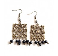 Earrings cabochon chic and long with silver chain ...