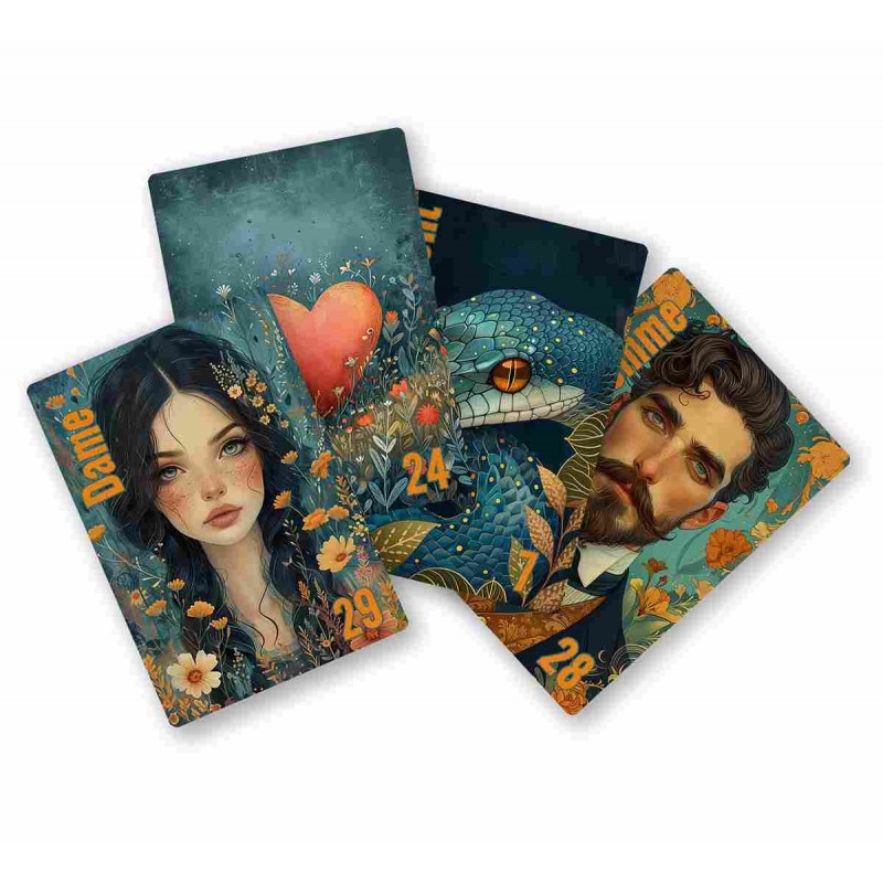 ✿ Le carte sono realizzate a mano nel nostro laboratorio, inclusa la fustellatura (seleziona "HM" per "Fatto a Mano" nel menu). Puoi scegliere una finitura opaca o lucida, in formato mini (6x4 cm) o standard (6x9 cm), consegnate in un piccolo sacchetto di organza. Le carte vengono spedite entro due o tre giorni. Il mazzo è realizzato su ordinazione. Nota: la spedizione tracciabile in Francia costa 4,90 € per gli ordini di mazzi effettuati presso il nostro laboratorio. ⚠️ Importante: fai attenzione quando scegli la dimensione desiderata! Ricontrolla la tua selezione prima di effettuare l'ordine.
